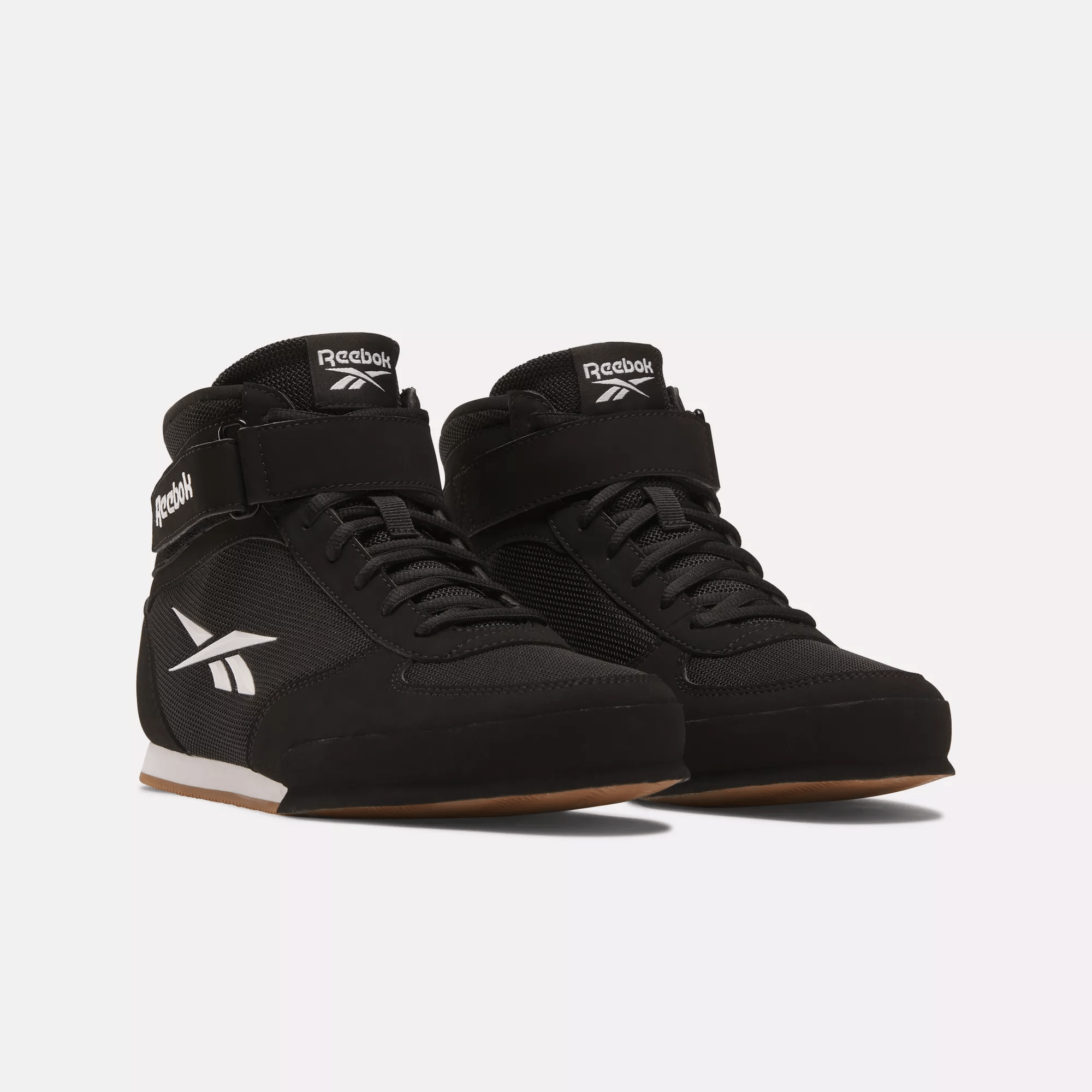 Channel lightning speed in these mid-cut boxing shoes from Reebok. They have a breathable mesh upper with suede overlays and an ankle strap to secure the fit. A low stack height keeps you connected to the ground beneath your feet.