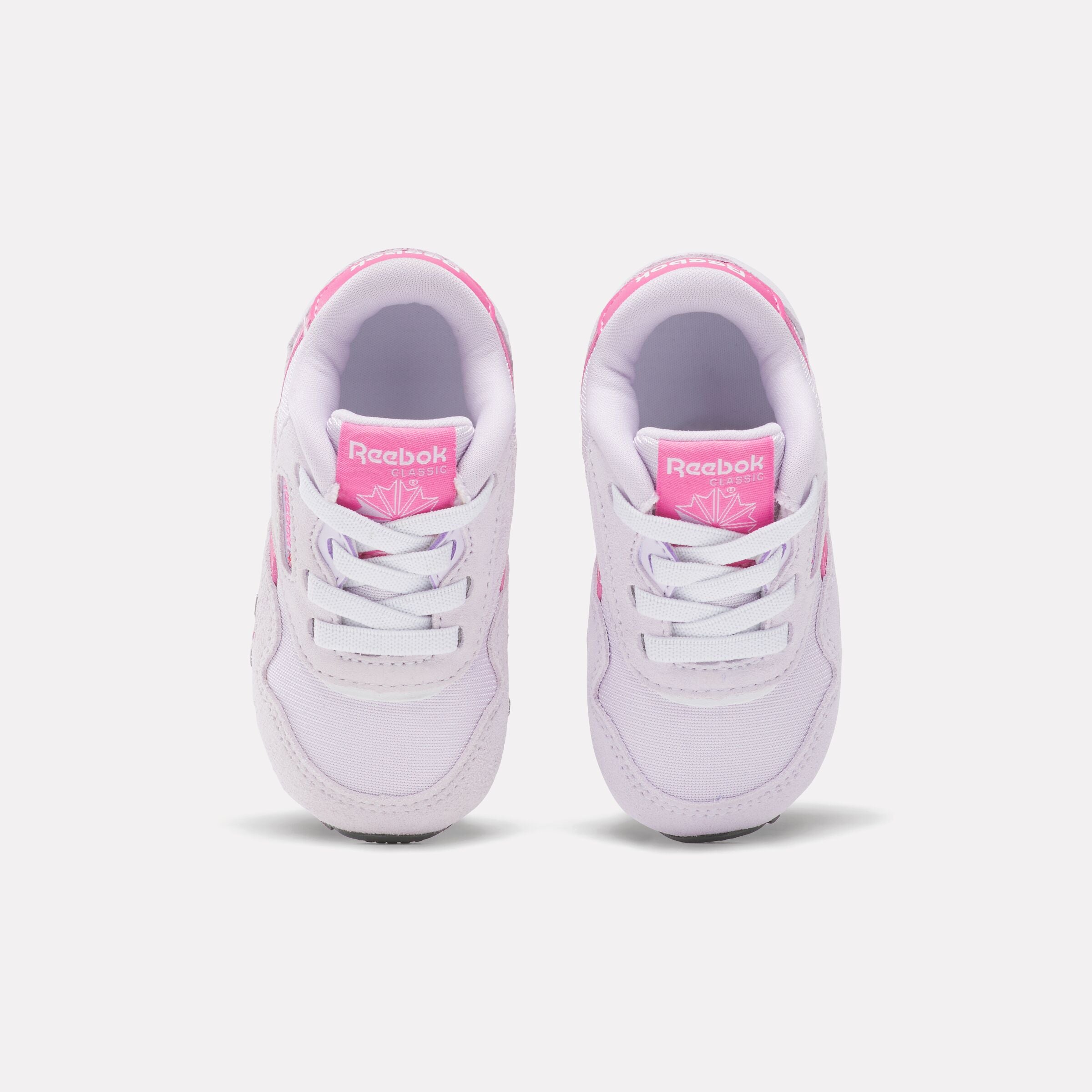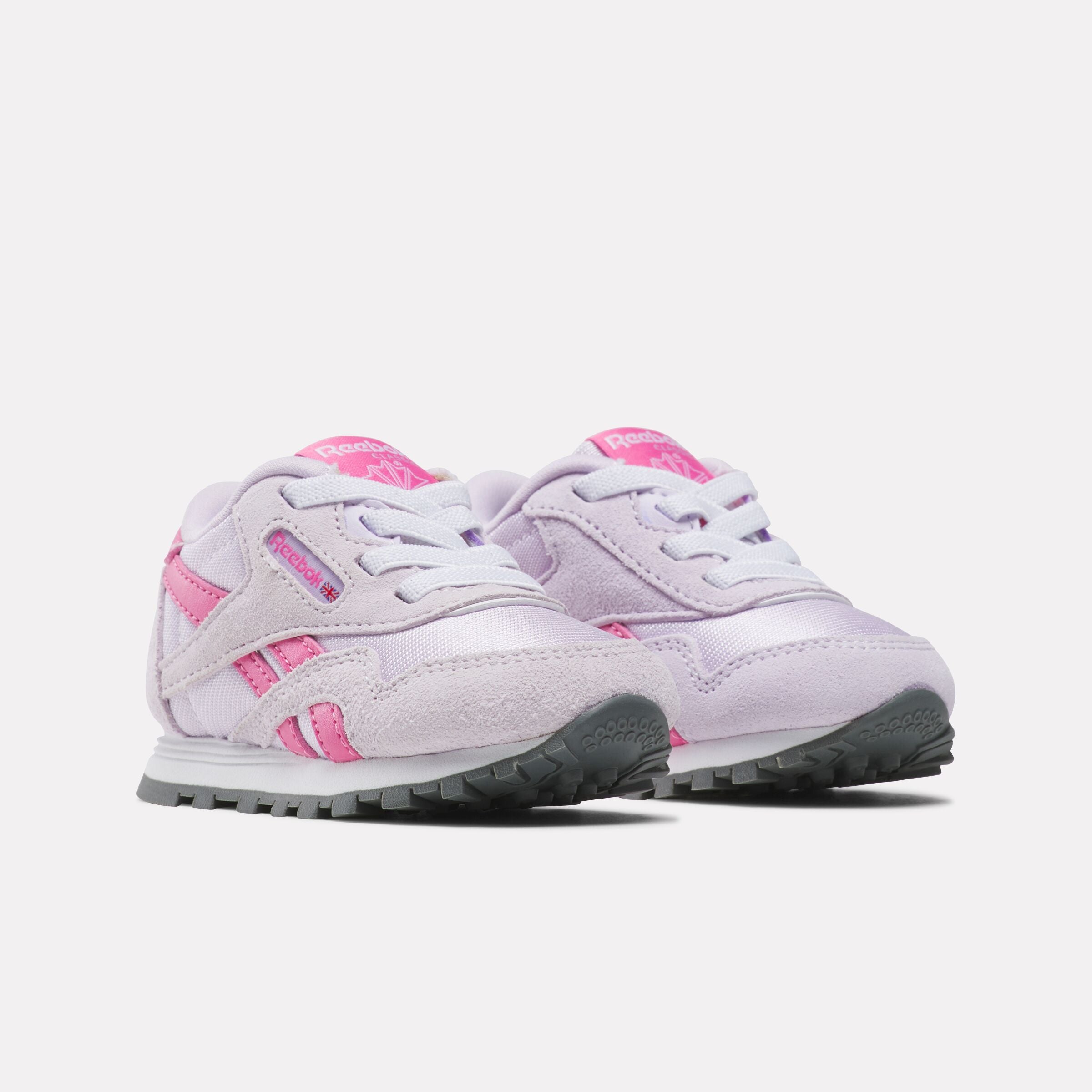 A classic since 1984. the Classic Nylon always been about clean. simple style. These toddler’s Reebok shoes are made of nylon with suede overlays that add luxe texture. Stretch laces make them easy to get on and off.