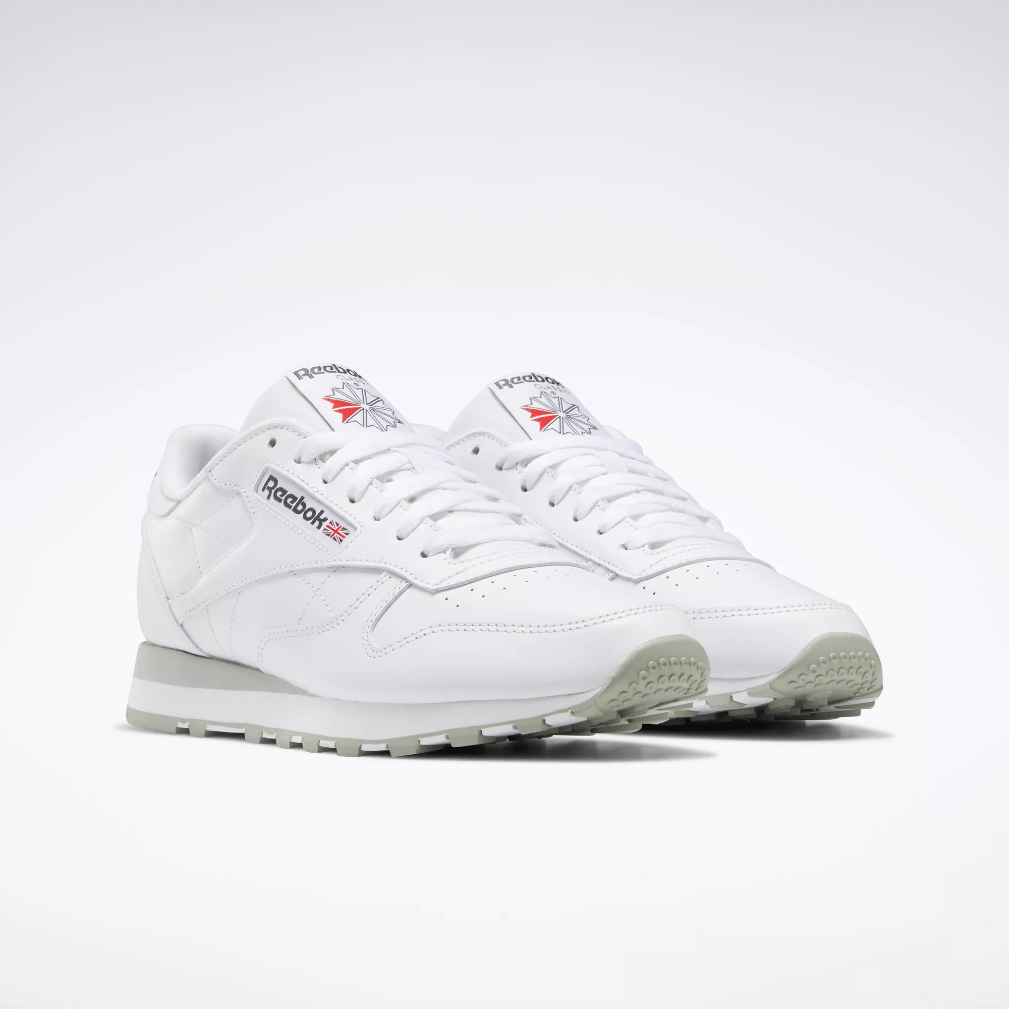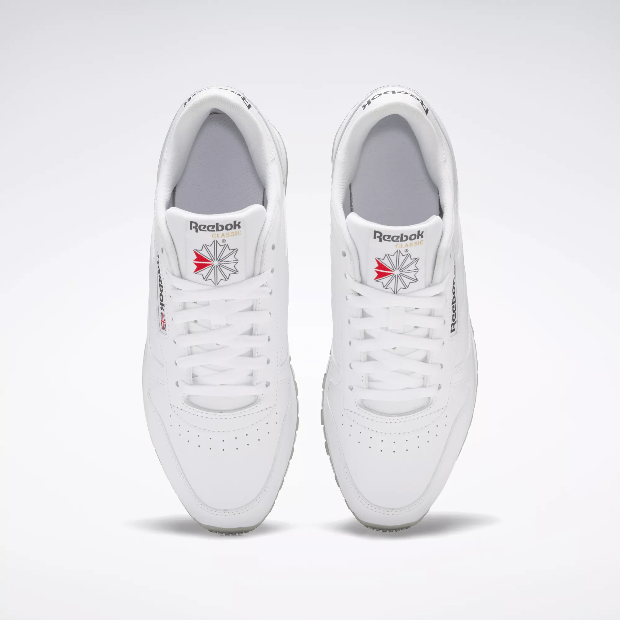 Clean. minimalist design keeps your look forever fresh. These Reebok Classic Leather Shoes update the iconic retro style. A supple leather upper and logos pulled from the archives give you trainers that always work. no matter what you pair them with.