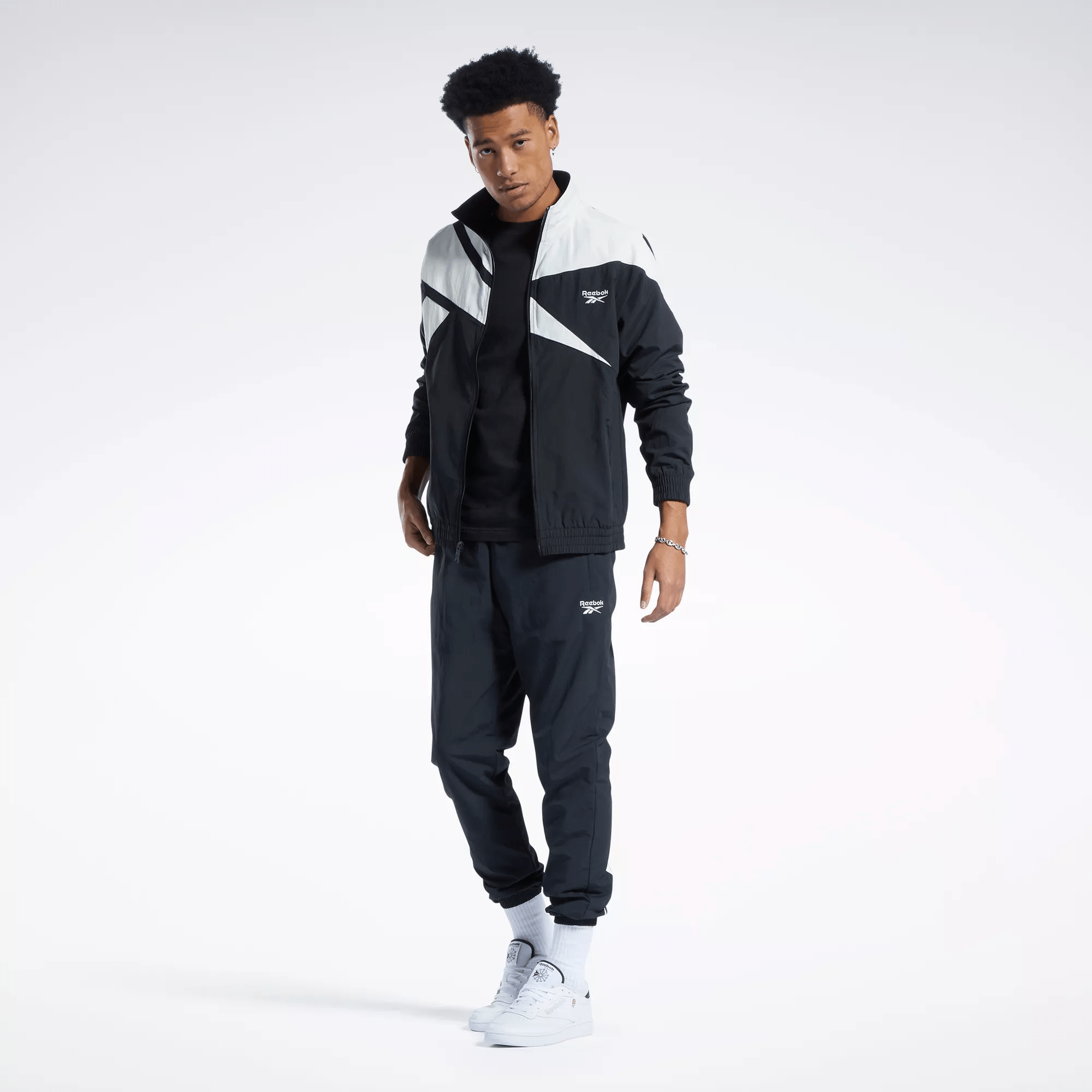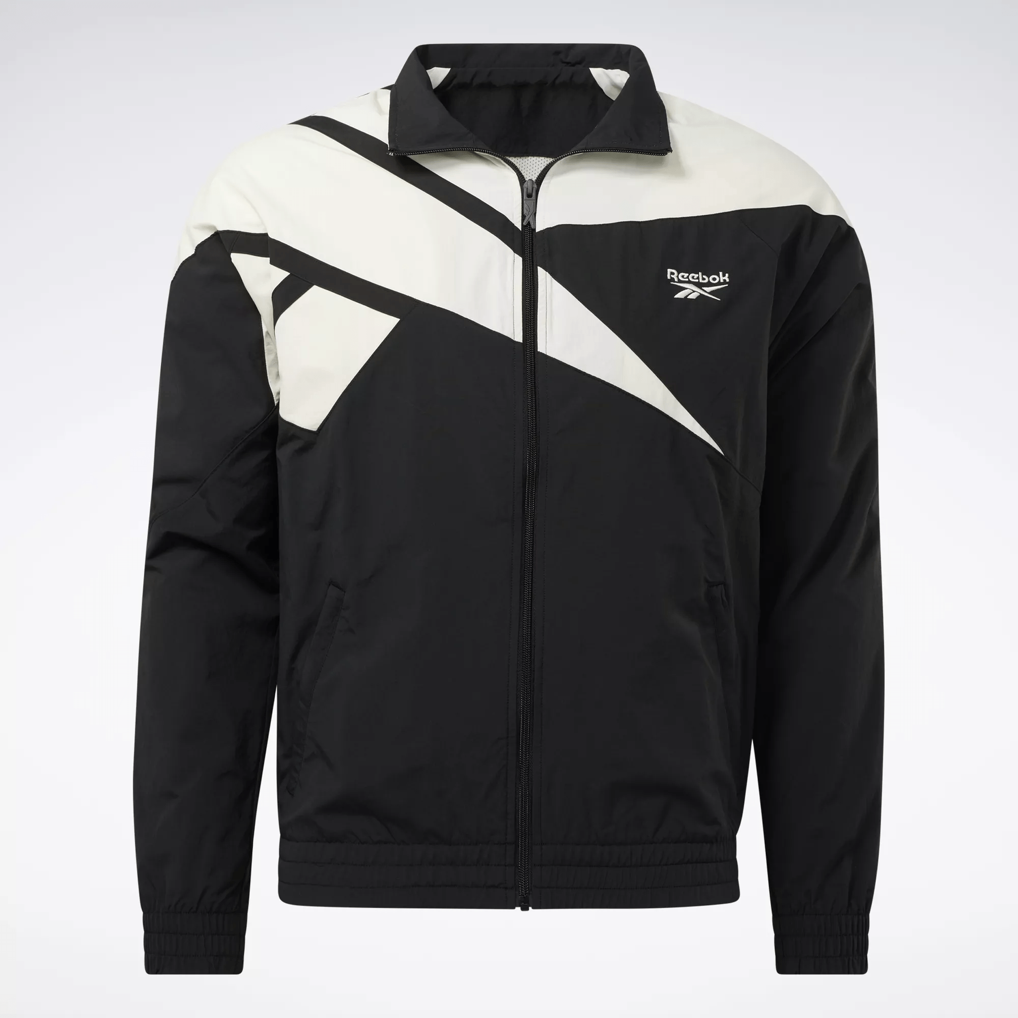 Minimalist style. maximum versatility. This Reebok track jacket pays homage to the classic Vector logo for a touch of old-school cool. Lightweight. crinkled material brings unexpected texture to your look for effortless comfort and style.