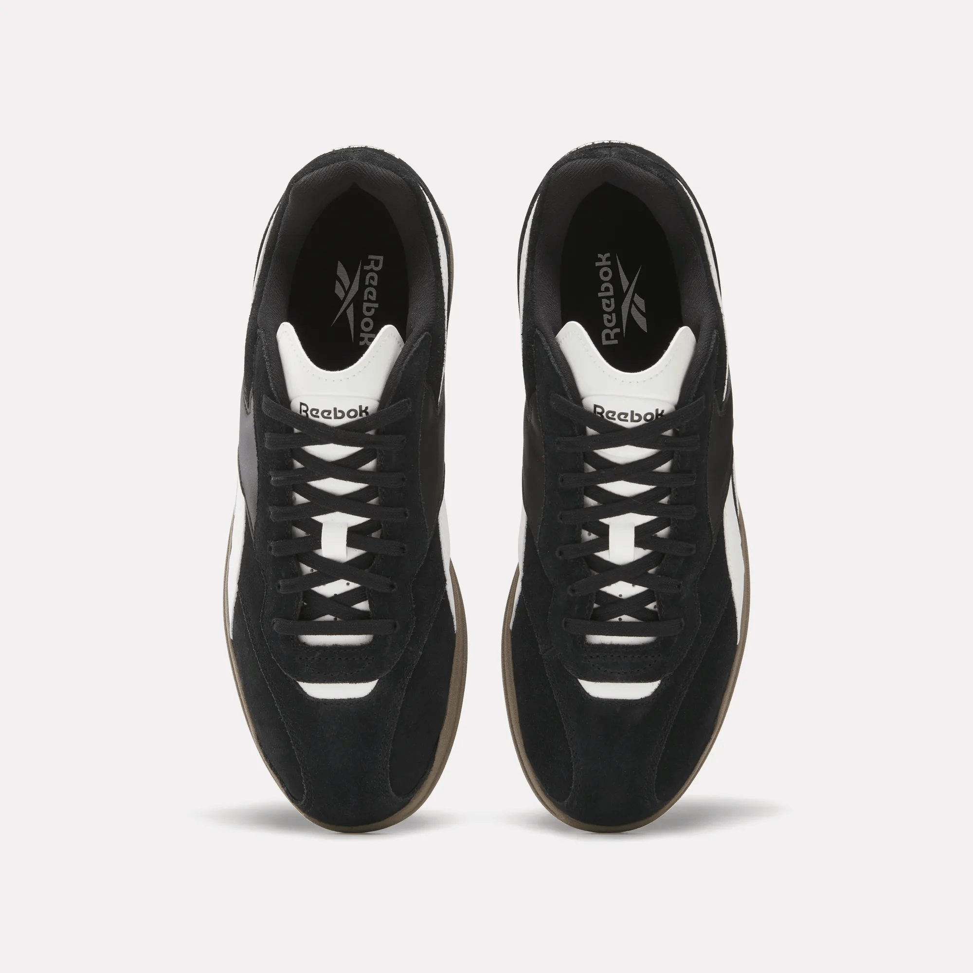Introduced in 1993. the Hammer range first saw glory on the turf. then became a fashion icon. These Hammer Street shoes build on Reebok’s soccer legacy. Originally designed for indoor play. they have a suede upper with a distinctive suede T-toe. The gum rubber outsole has textures from the original.
