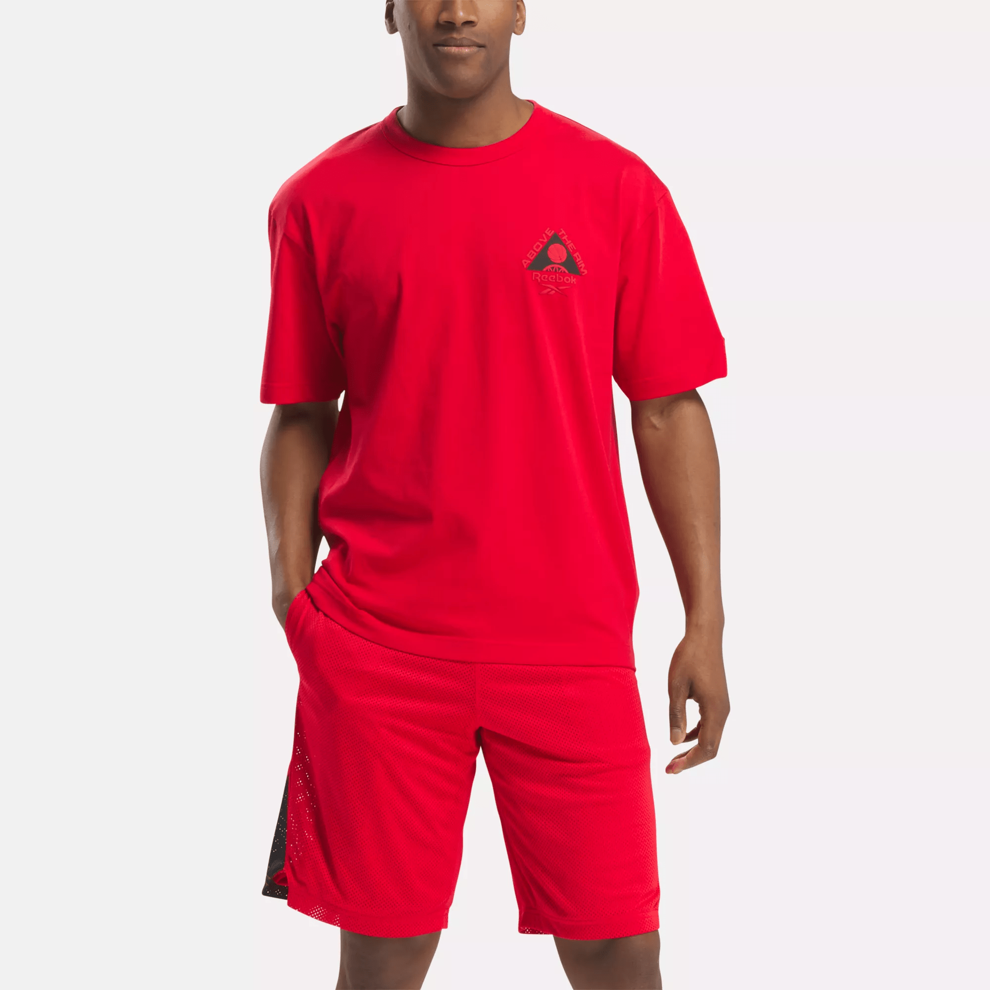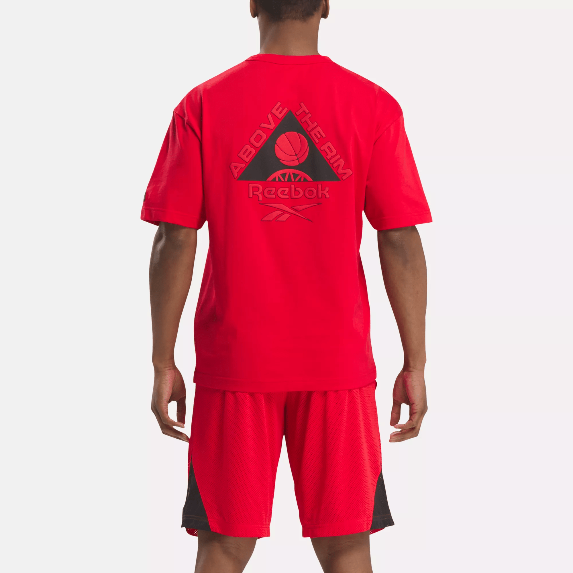 Above the Rim has been synonymous with street basketball culture since the early ’90s. This men’s Reebok t-shirt brings back that blacktop nostalgia with graphics on the front and back. Its all-cotton build feels soft against your skin.