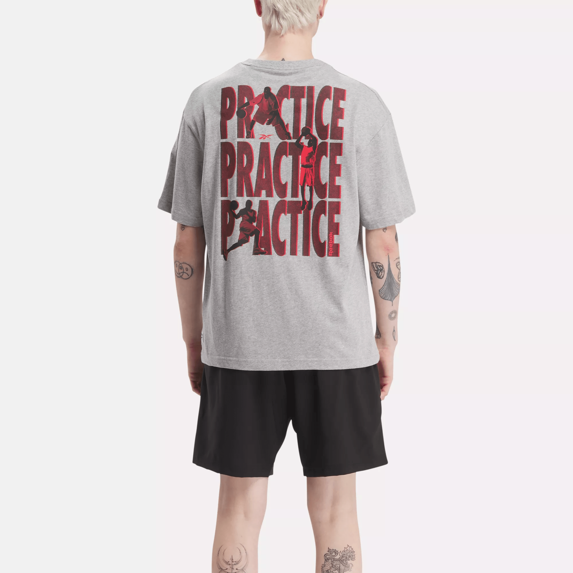 Mad skills don’t just happen. Show your commitment to the game in this men’s Reebok t-shirt. It’s made of soft cotton to keep you comfortable no matter where the day takes you next. A big hoops graphic on the back inspires you to practice. practice. practice.