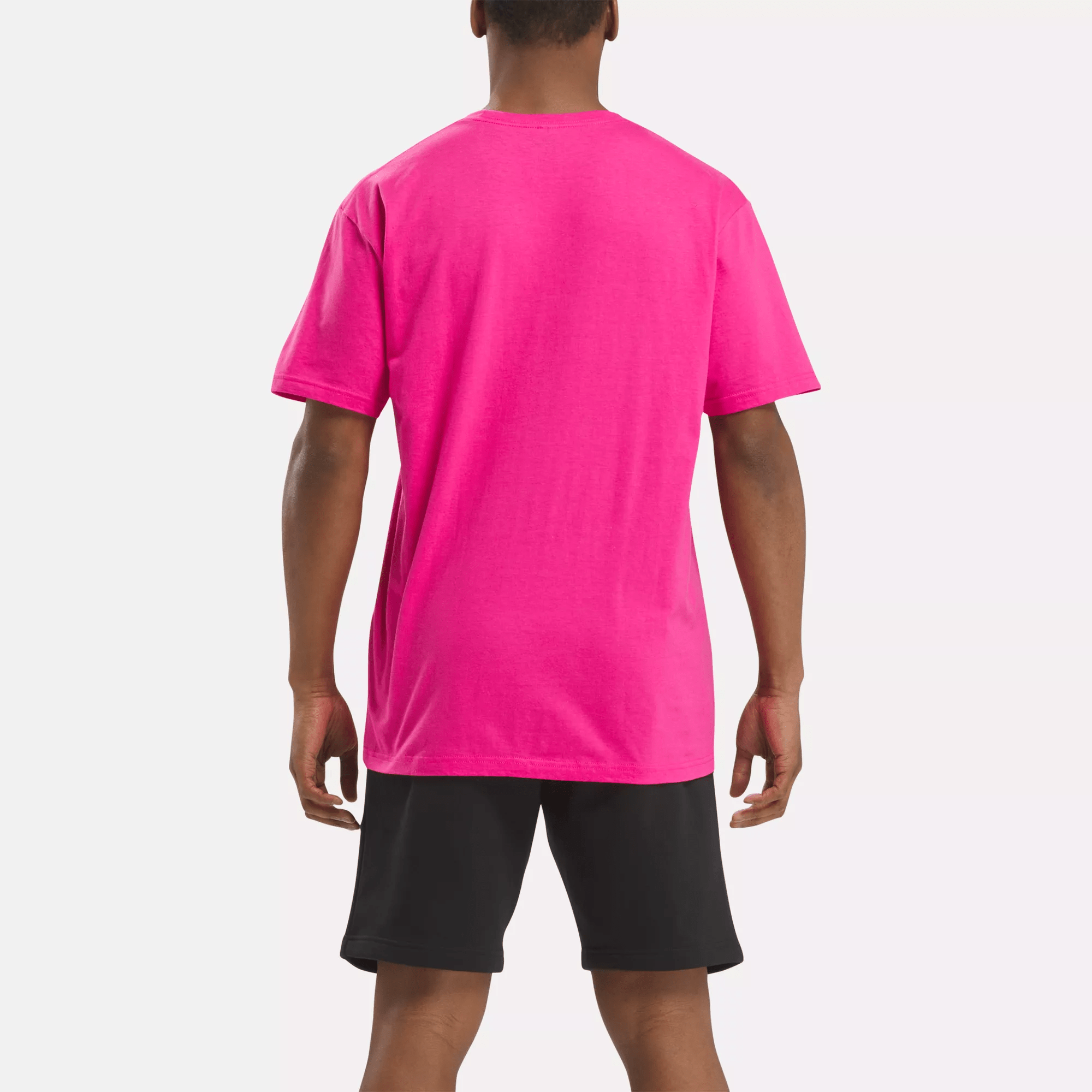 Embrace the power of pink in this men’s t-shirt. It’s made of soft cotton for everyday wear. A Reebok Vector logo is printed on the chest.