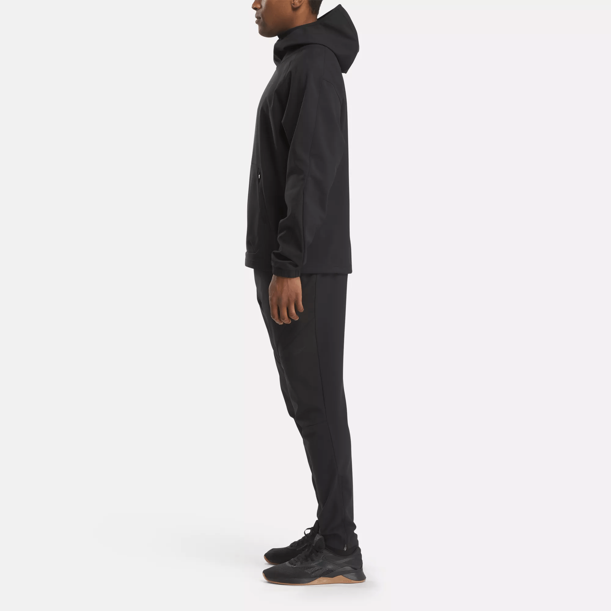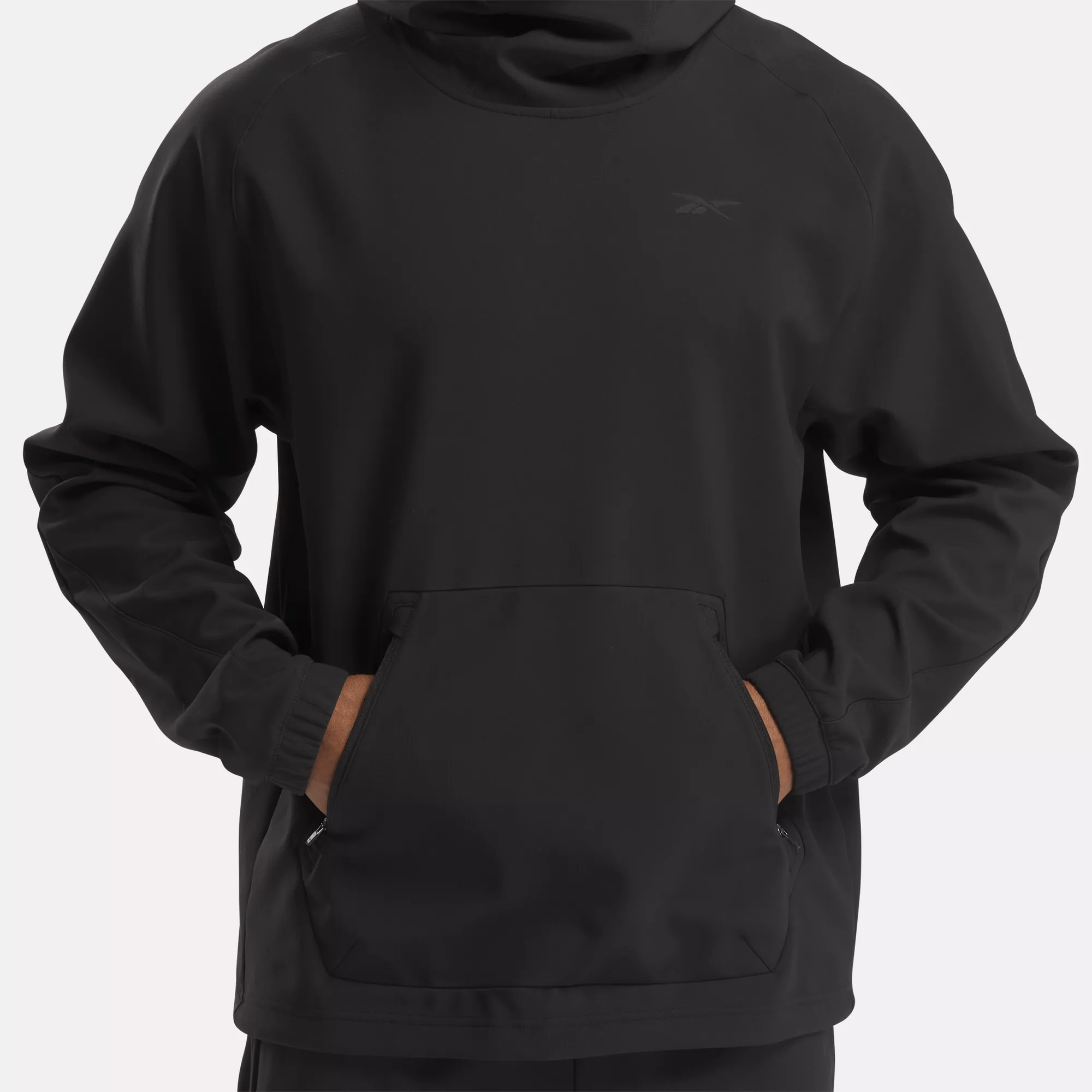 When the temperature drops. reach for this men’s Reebok hoodie to get you to the gym in comfort. Bonded grid fleece with a woven exterior holds in heat. and a scuba hood lets you block out cold air. The bungee-adjustable hem nods to outdoor style.