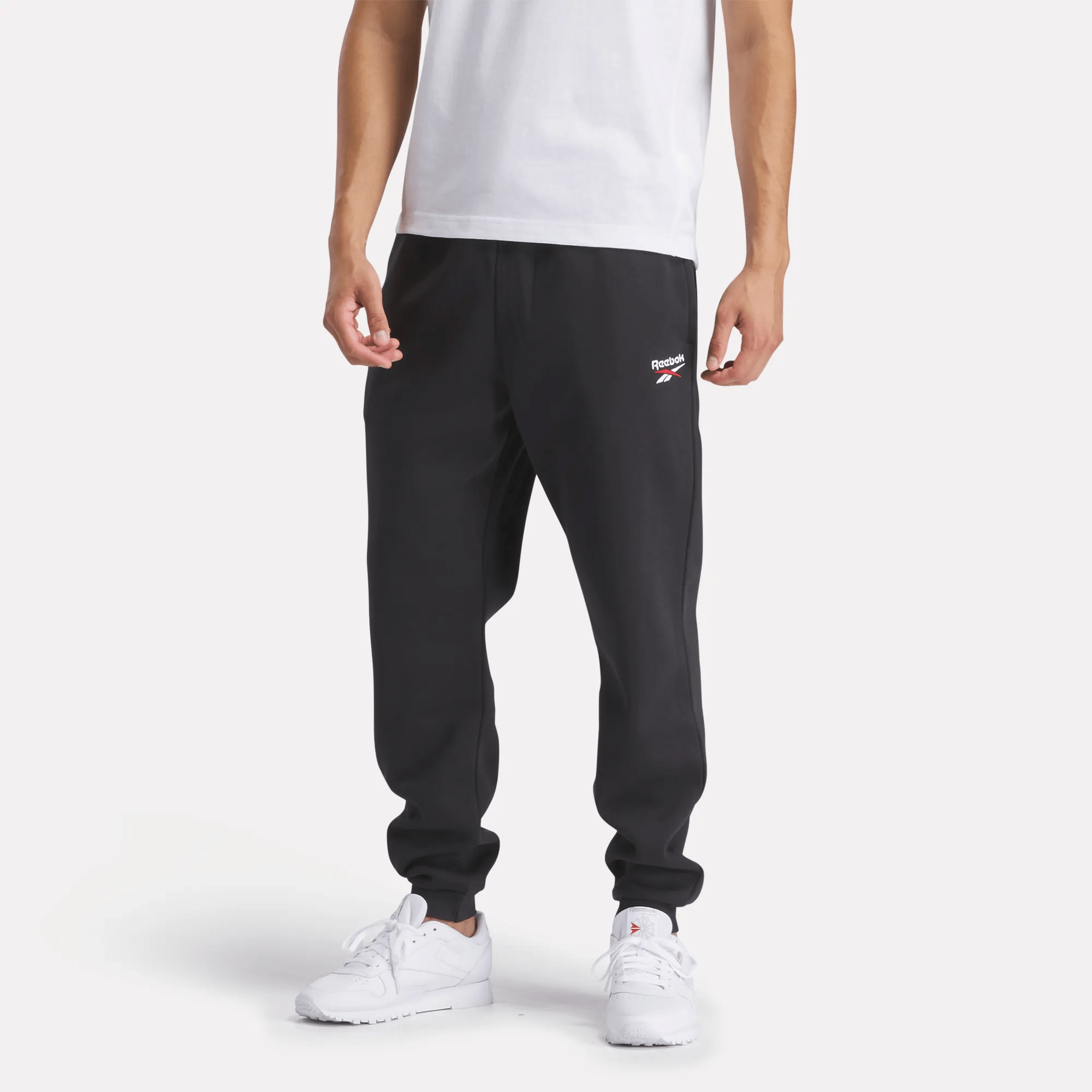 Downtime is anytime in these men’s joggers. made from soft fleece that stays cozy and comfortable no matter how you move. Elastic cuffs taper the silhouette and let you show off the shoes of the day. The flexible waistband is designed for comfort with a drawcord for a stay-put fit. A subtle logo signs off with a hint of Reebok attitude.