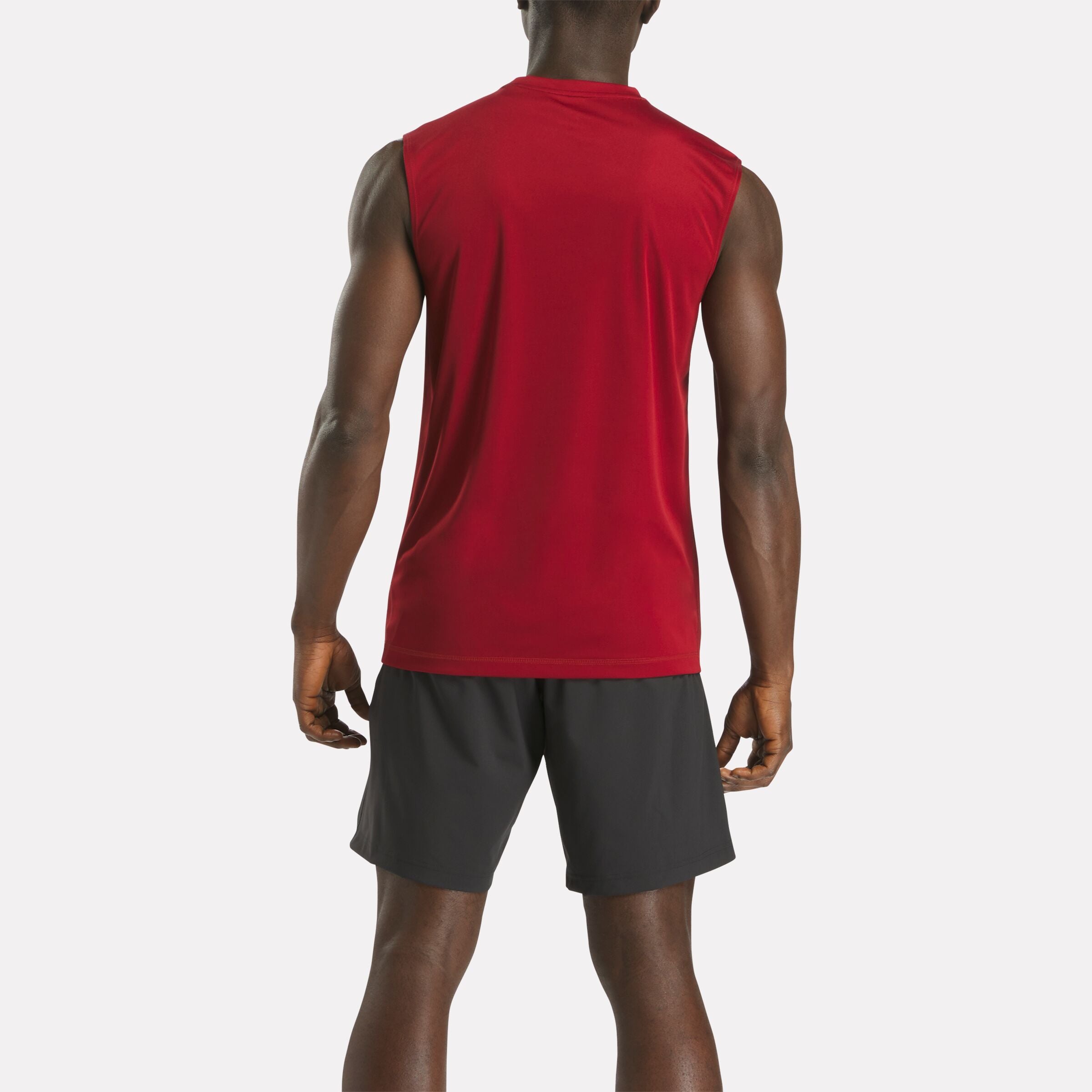 Power through every training session in this men’s sleeveless tech tee. Lightweight polyester jersey keeps you cool as you push the pace. The regular fit gives you room to move without distractions. A classic crewneck design adds all-day comfort. whether you’re lifting or stretching it out.