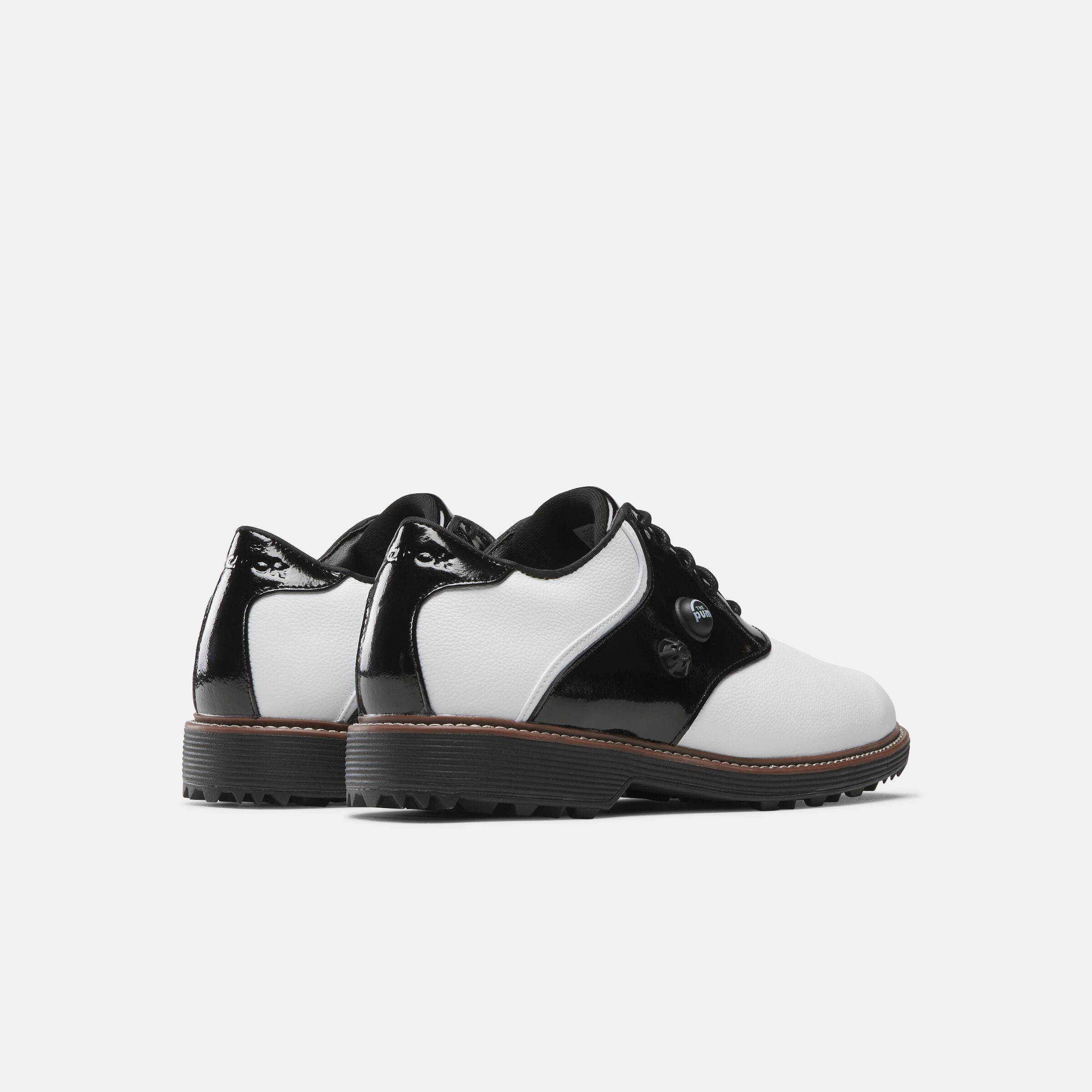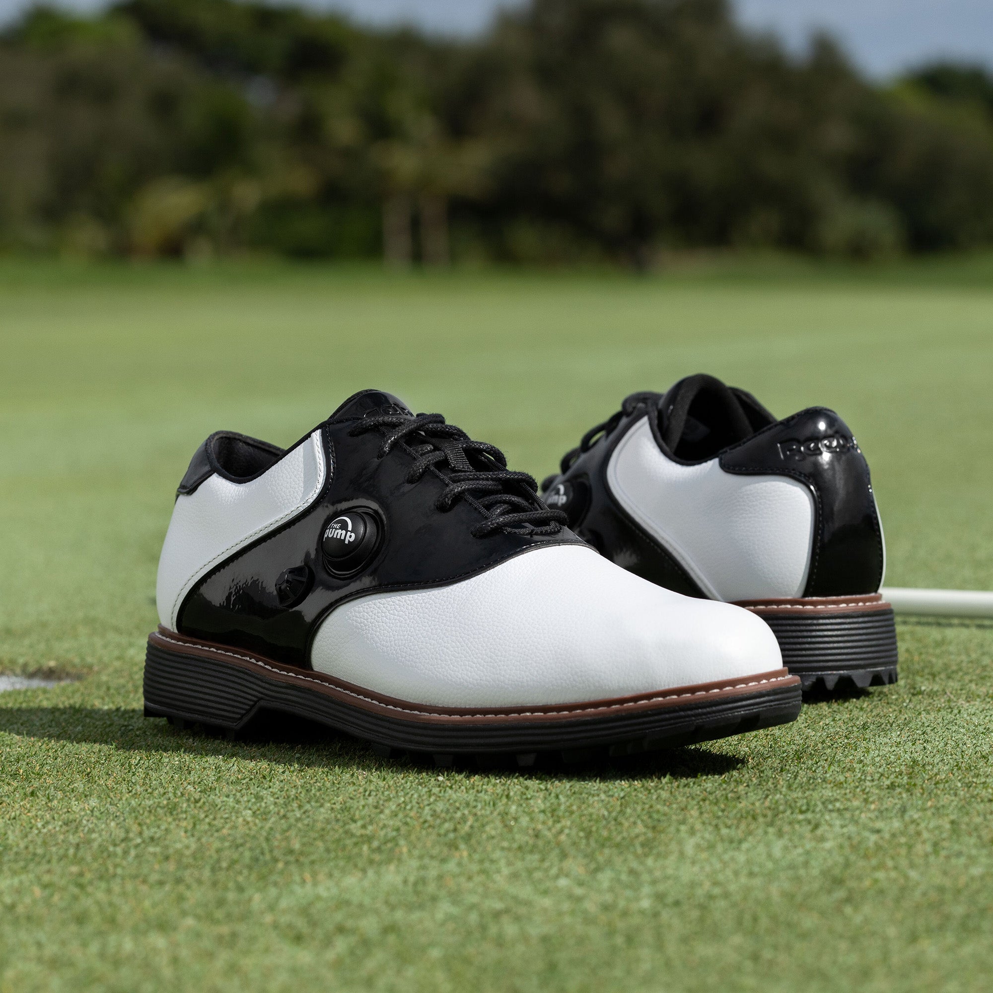 Spikeless golf shoes with a pebbled leather upper