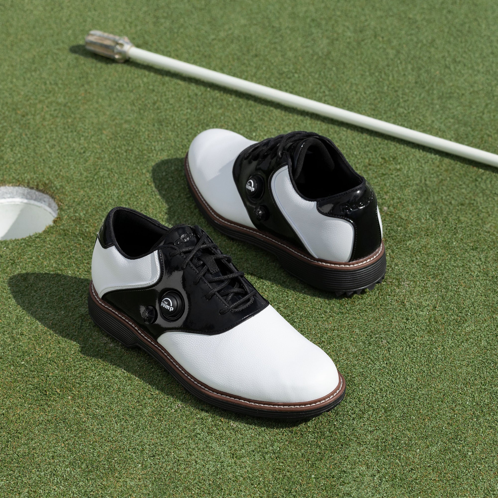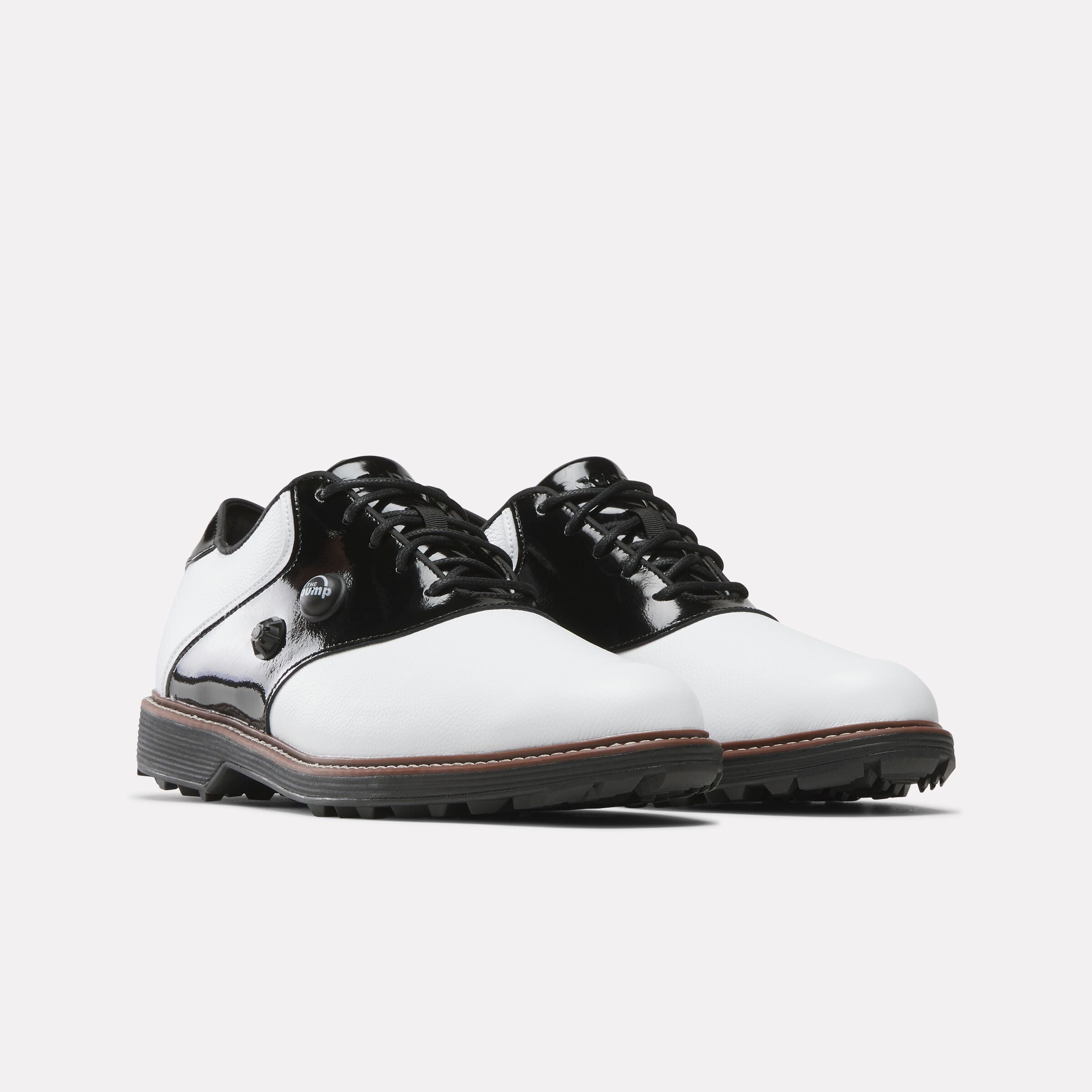 Raise your game in these Reebok golf shoes. They’re designed with The Pump technology for a locked-down fit. A pebbled leather upper stands up to drizzly days and wet courses. The spikeless outsole keeps you grounded from the first hole to the last.