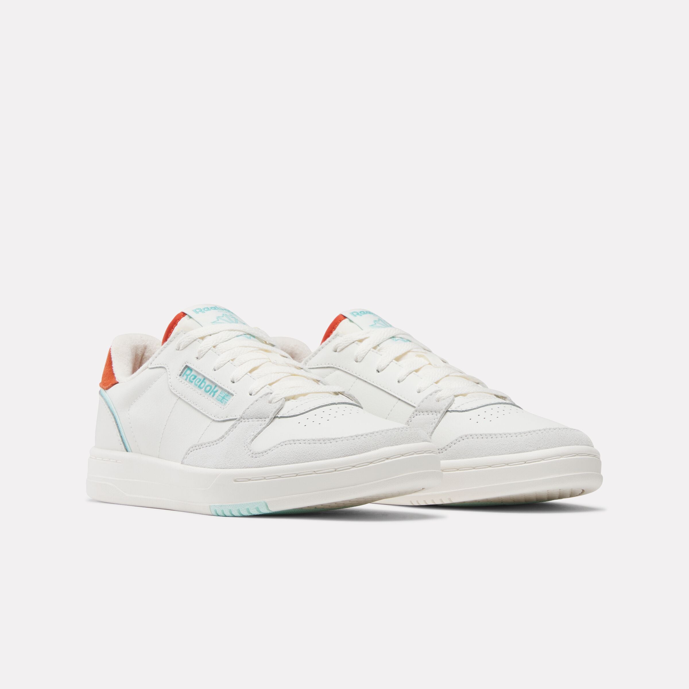 Lace up a deluxe court look when you wear these Reebok shoes. All the Phase Court details you expect with an upper of full leather and suede. Sleek. clean and effortless.