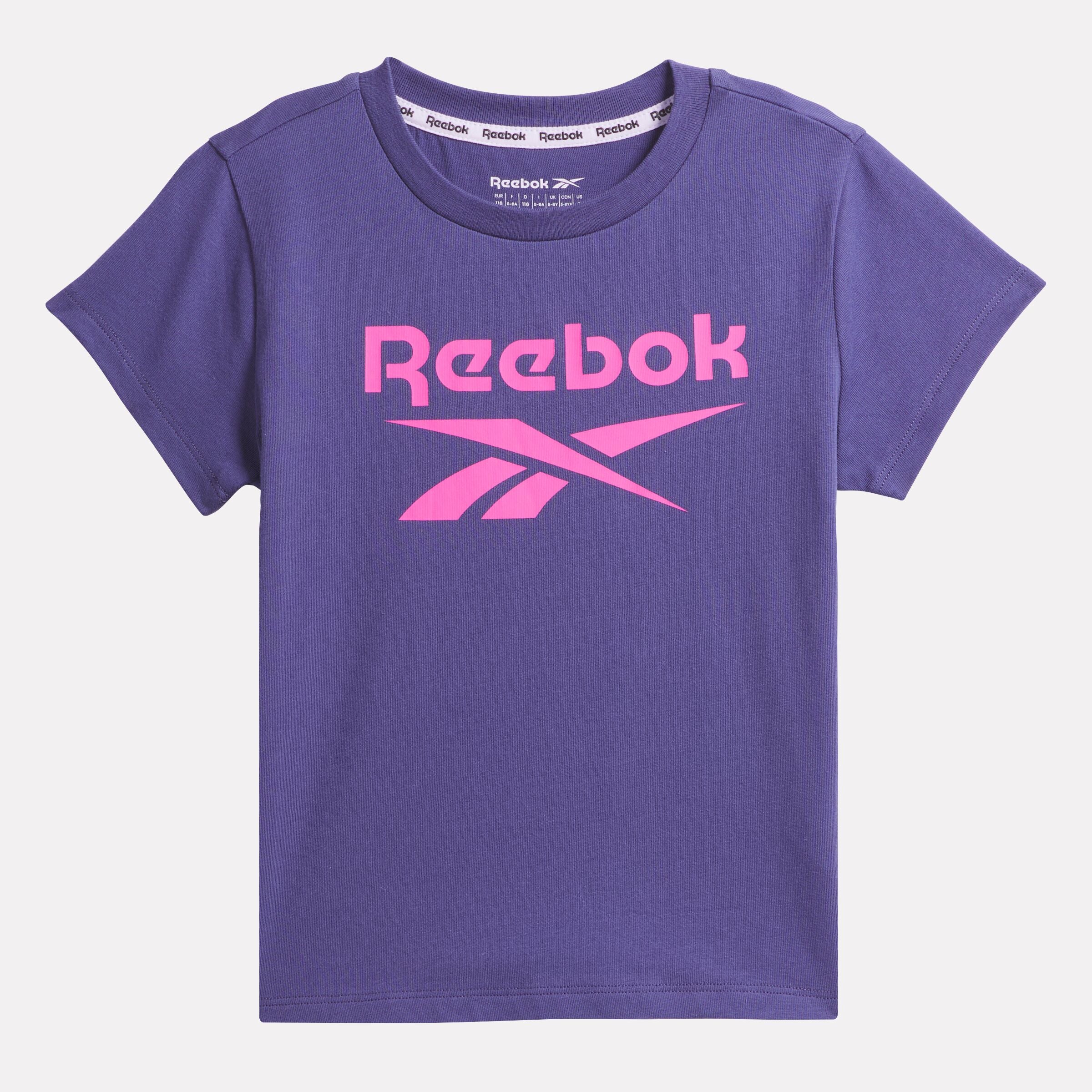 Comfy tees are essential for active kids. This girls’ short-sleeve t-shirt has a soft feel thanks to all-cotton jersey. A Vector logo on the chest showcases Reebok heritage.