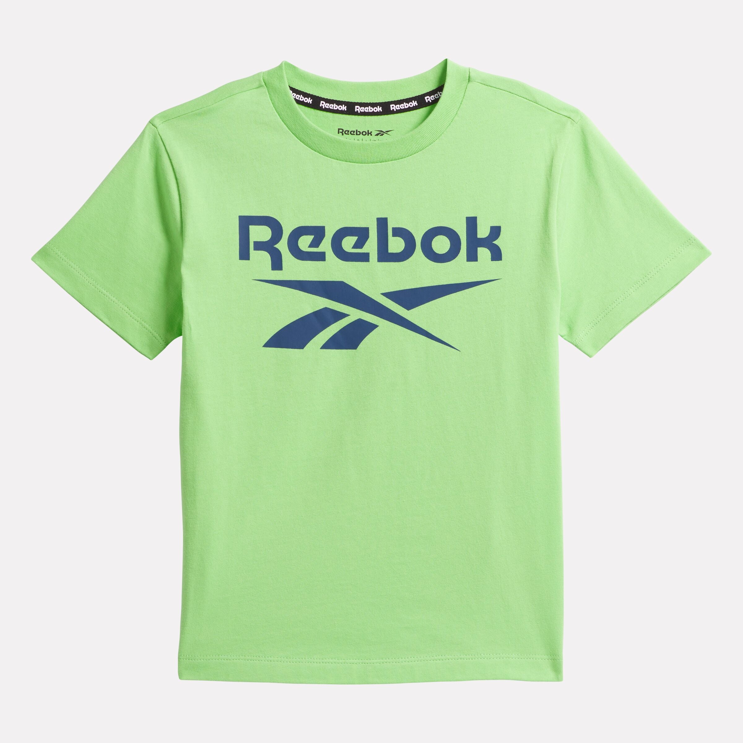 Comfy tees are essential for active kids. This boys’ short-sleeve t-shirt has a soft feel thanks to all-cotton jersey. A Vector logo on the chest showcases Reebok heritage.
