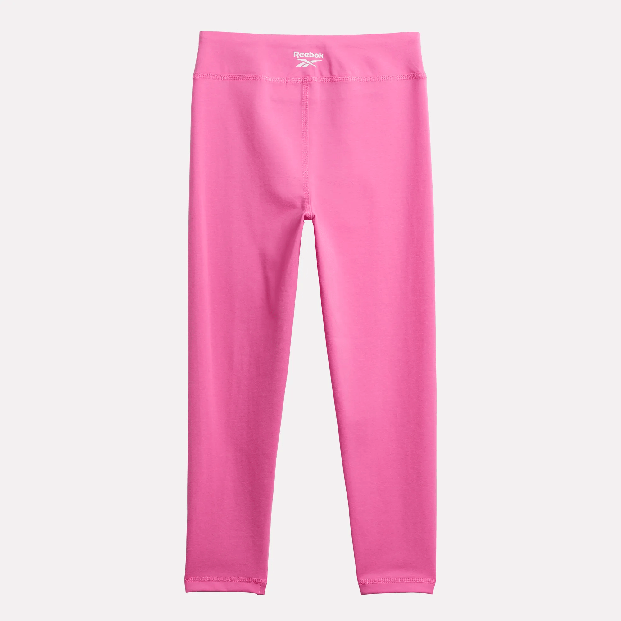 Stretchy tights are a staple in any kid’s closet. These girls’ Reebok leggings will keep her comfortable from school days to active weekends. They’re made from soft cotton-blend fabric with a Vector logo.