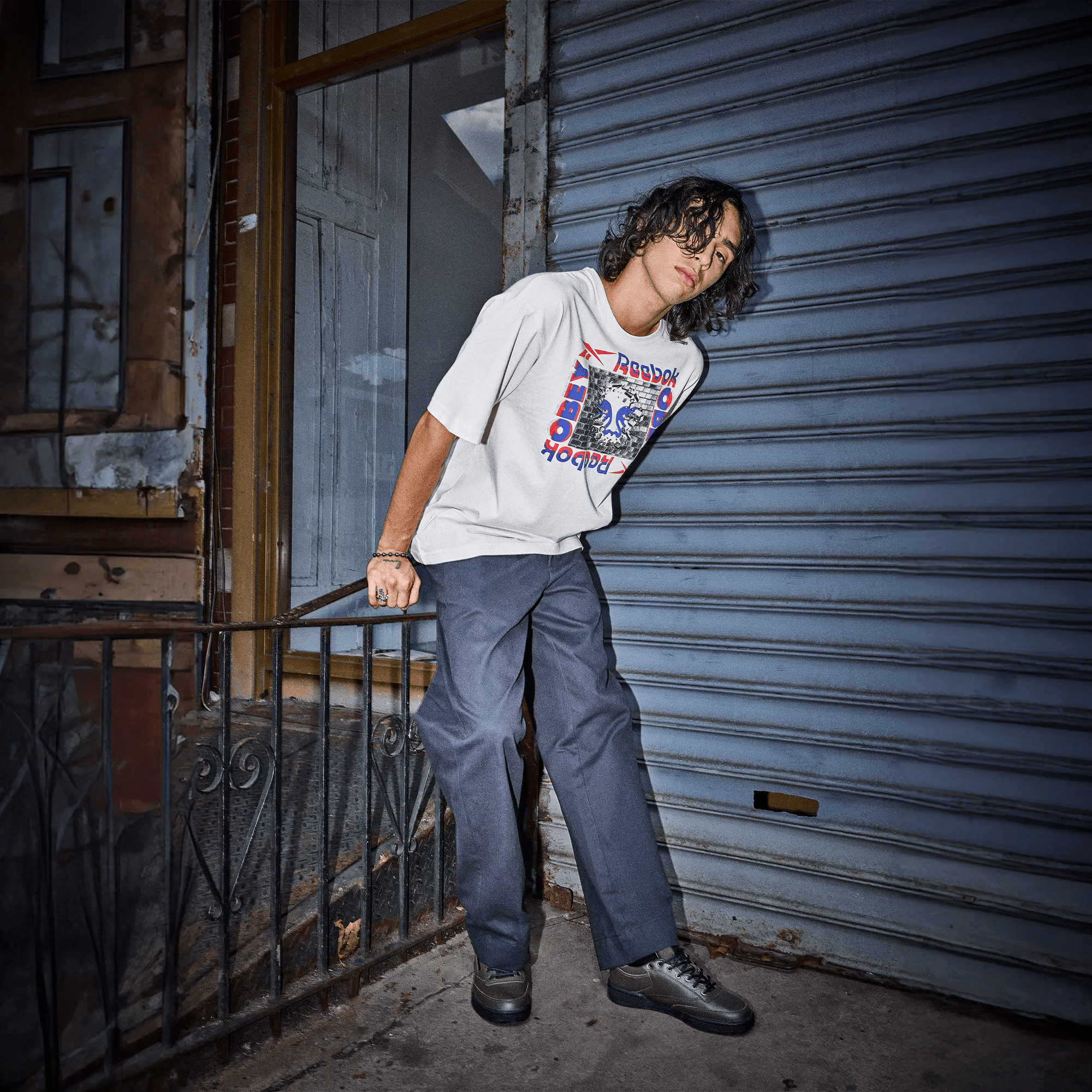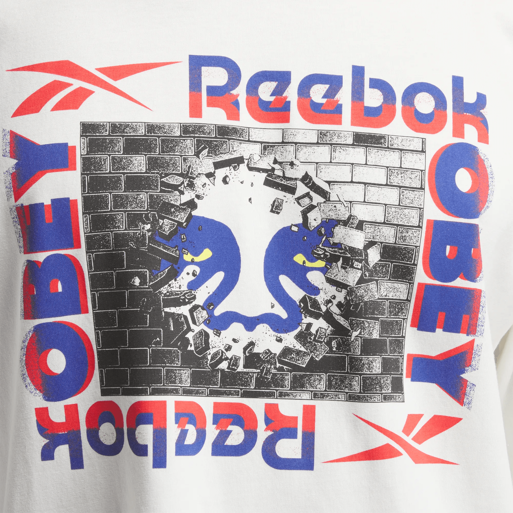 Push the boundaries and break the status quo when you wear this Reebok x Obey graphic t-shirt. Created in collaboration with Obey. this collection celebrates active outcasts who explore movement through street sports and appreciate a modified nostalgic look. feel. and vibe. Soft cotton fabric and a roomy cut make this tee comfy.