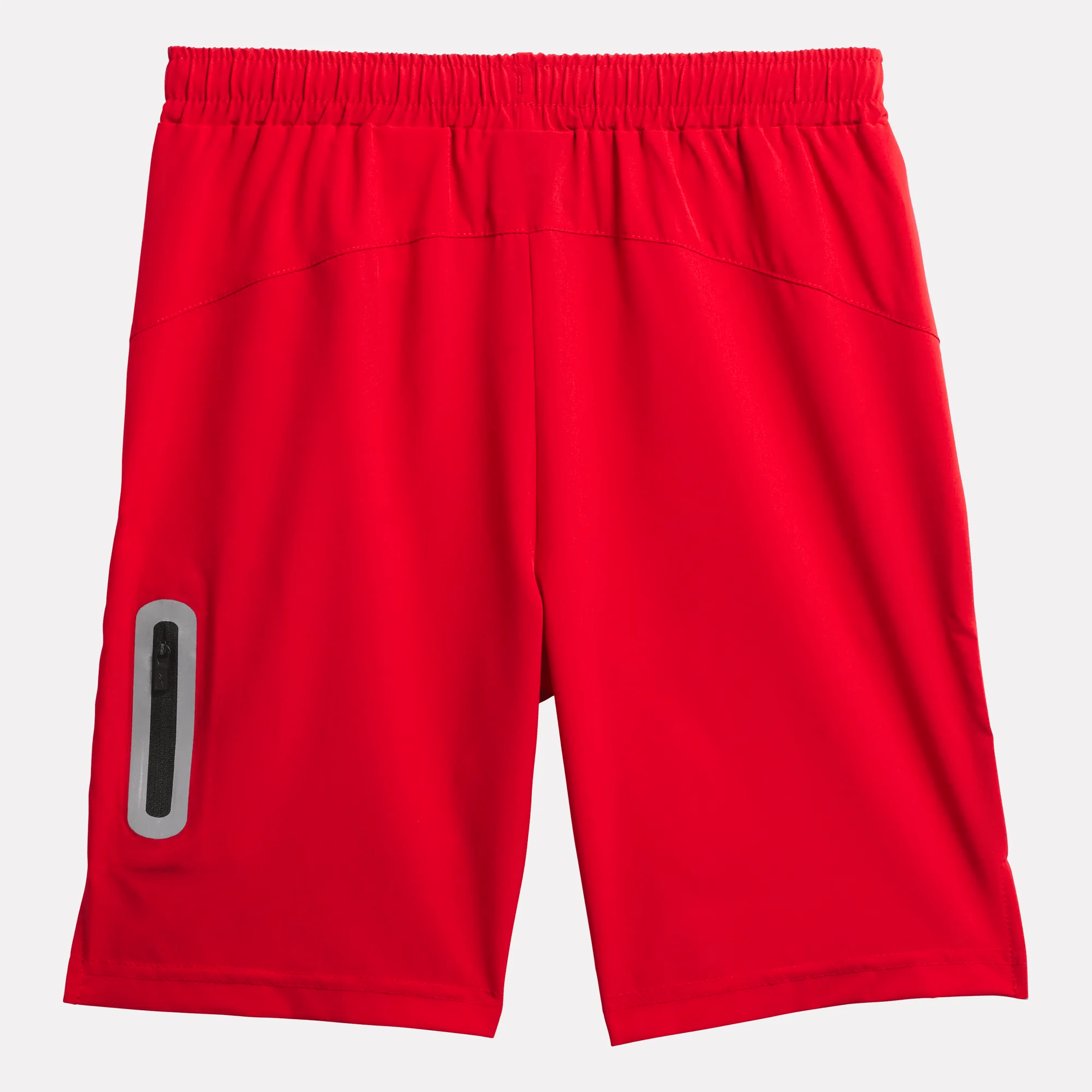 Born for the active life. These boys’ Reebok shorts are built from smooth woven fabric with the perfect amount of stretch. They feel comfortable whether he’s sitting behind a desk or running around the field.