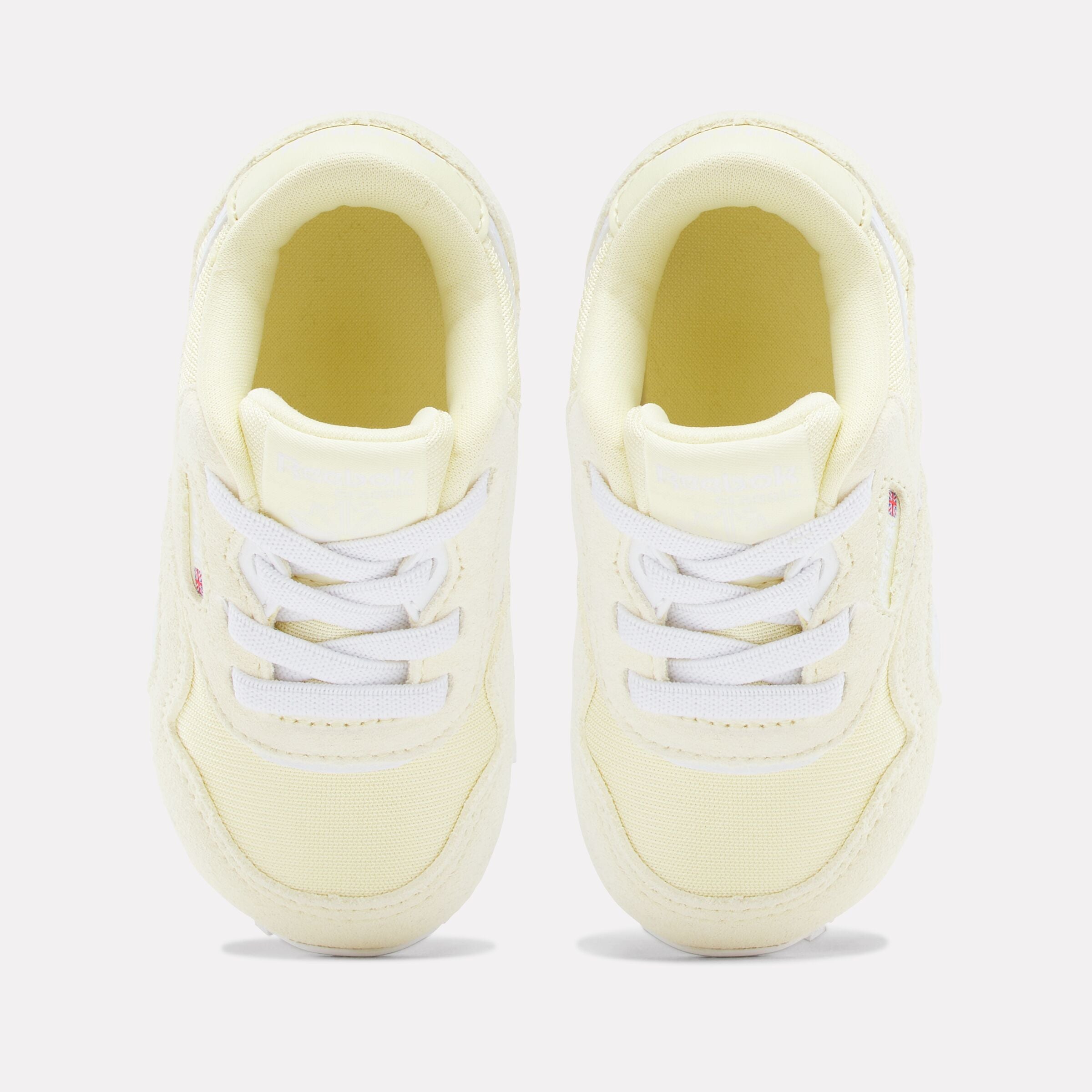 A classic since 1984. the Classic Nylon always been about clean. simple style. These toddler’s Reebok shoes are made of nylon with suede overlays that add luxe texture. Stretch laces make them easy to get on and off.