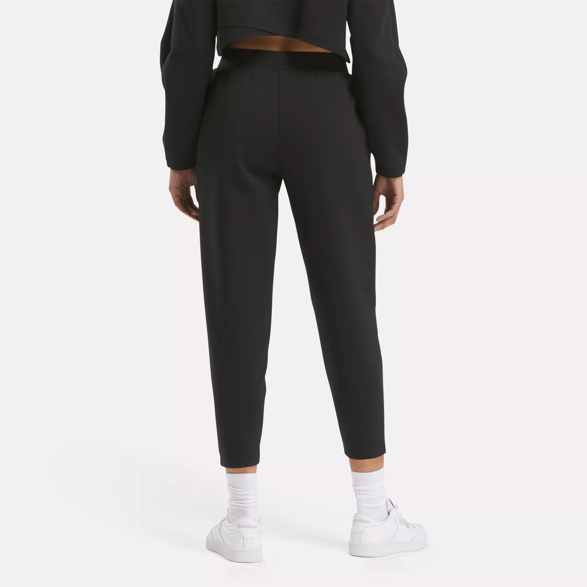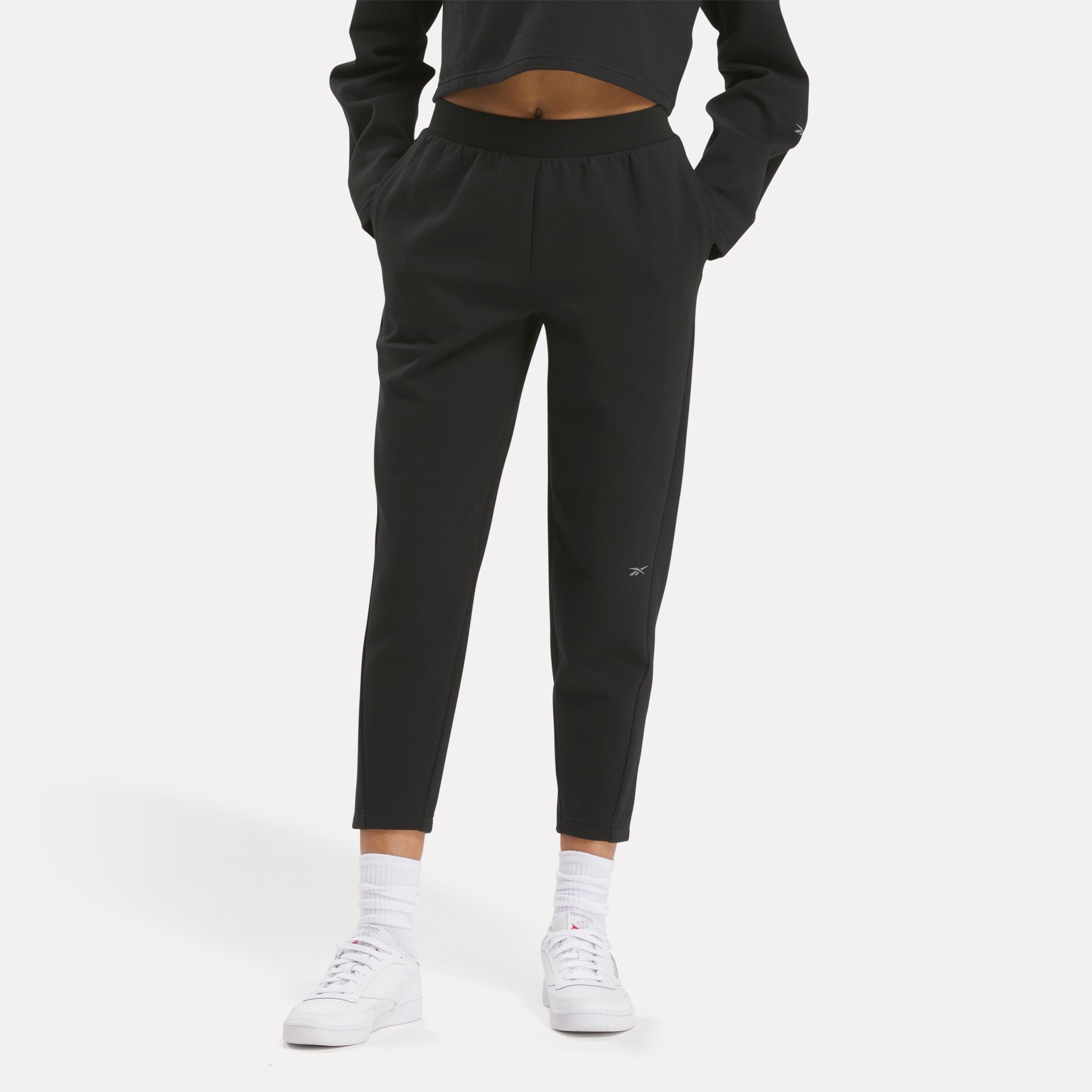 These women’s pants are built for comfort from fabric made with Reebok’s signature DreamBlend cotton. They are perfect worn as a layer to and from the gym. but the tapered legs make them sleek and polished enough for your favorite brunch spot.