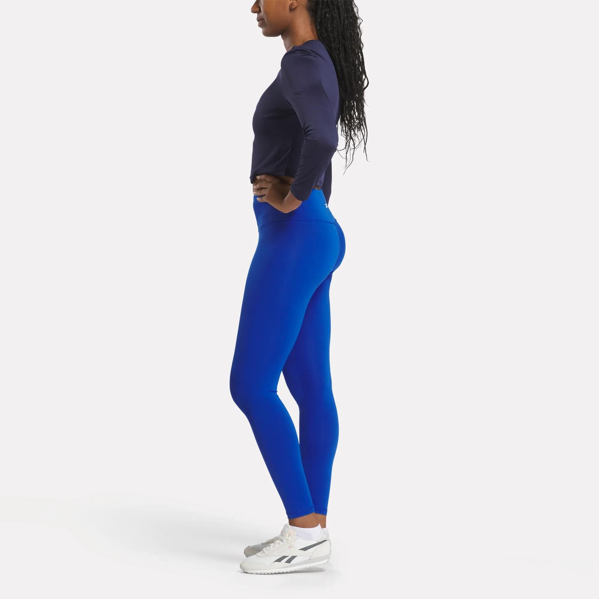 From cycling class to recovery stretches. these women’s Reebok leggings are built to move with you. RBK-DRY fabric wicks sweat. so you stay fresh through every pedal. The snug fit hugs your body for total comfort. while the high-rise waist gives you coverage that stays put through every ride.
