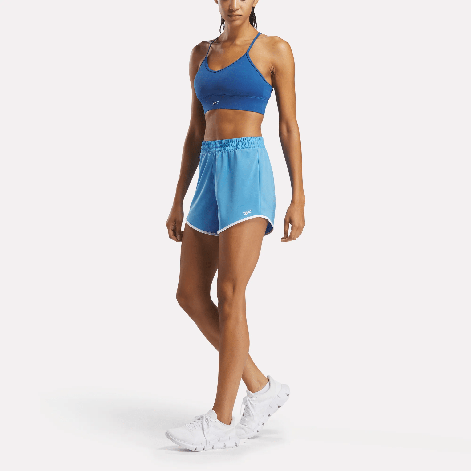 A staple in any workout wardrobe. these women’s Reebok training shorts help you go after your goals. Knit fabric gives you comfort and freedom of movement as you squat. lunge and run. Contrast piping at the hem adds a pop of color.