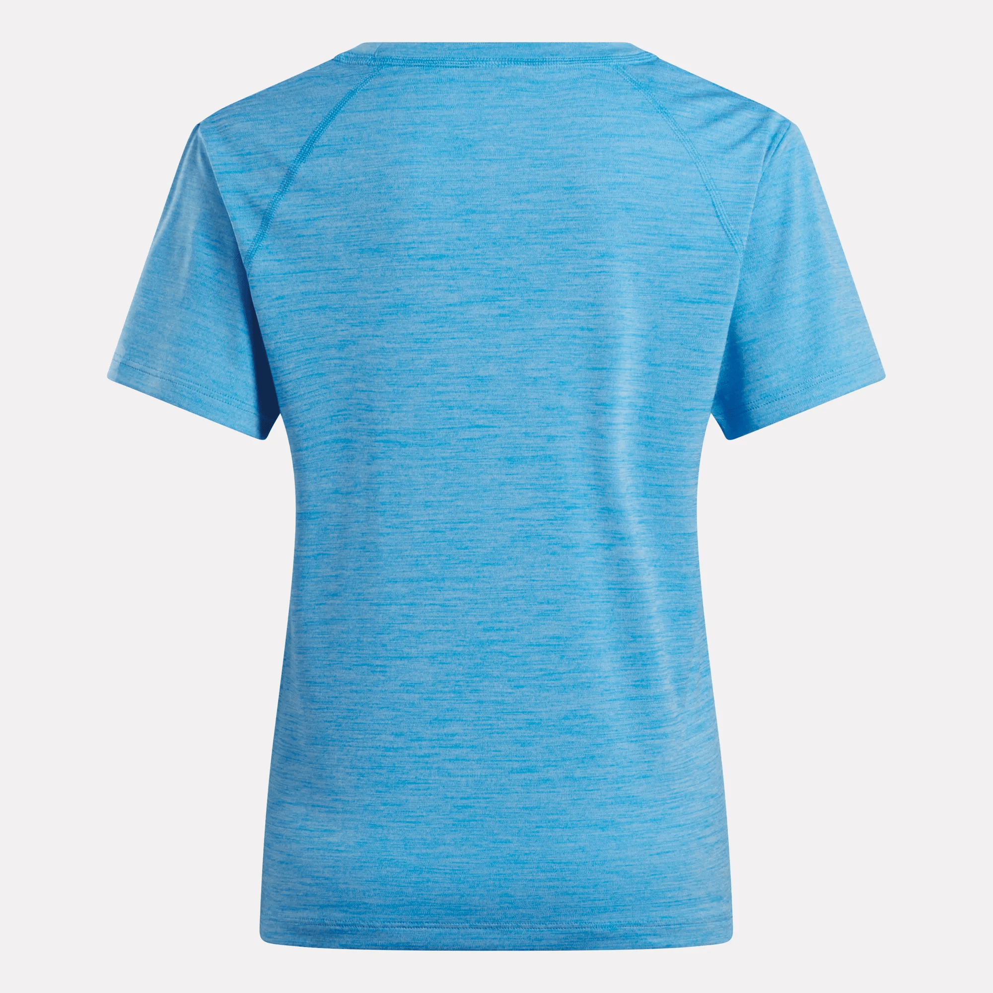 This women’s Reebok training tee brings fresh energy to your workout. Ultra-lightweight knit fabric wicks sweat to keep you dry when you raise the intensity. Raglan cut lines at the shoulders give it a flattering silhouette.