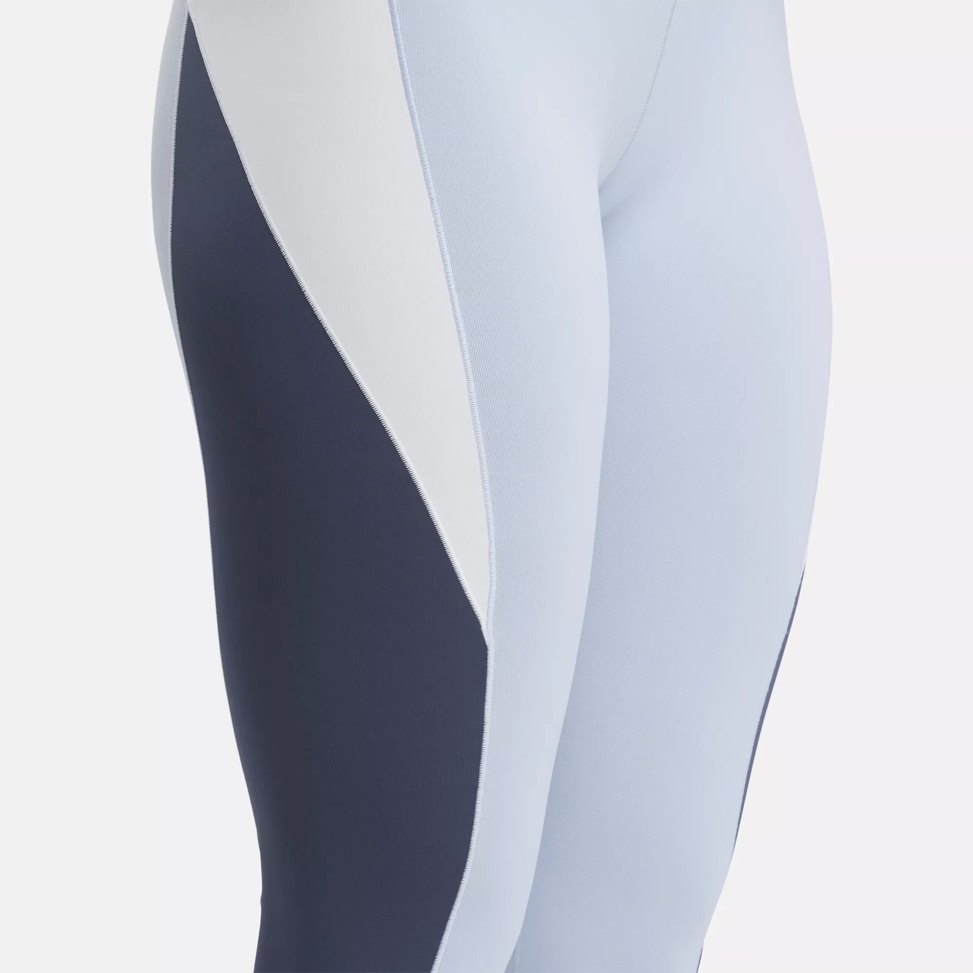 These Reebok women’s Lux High-Rise Colorblock Leggings transition seamlessly from your workout to the rest of your day. A wide. high-rise waistband hugs you in for a secure and flattering fit. Made in our performance Nylux fabric with a soft. cotton handed feel. RBK-DRY technology helps wick away sweat and keeps you dry in spin class or the weight room. RBK-FRESH in the gusset helps eliminate odor so you’re ready to power through even when body heat builds. Color blocked panels at the sides add a pop of color.