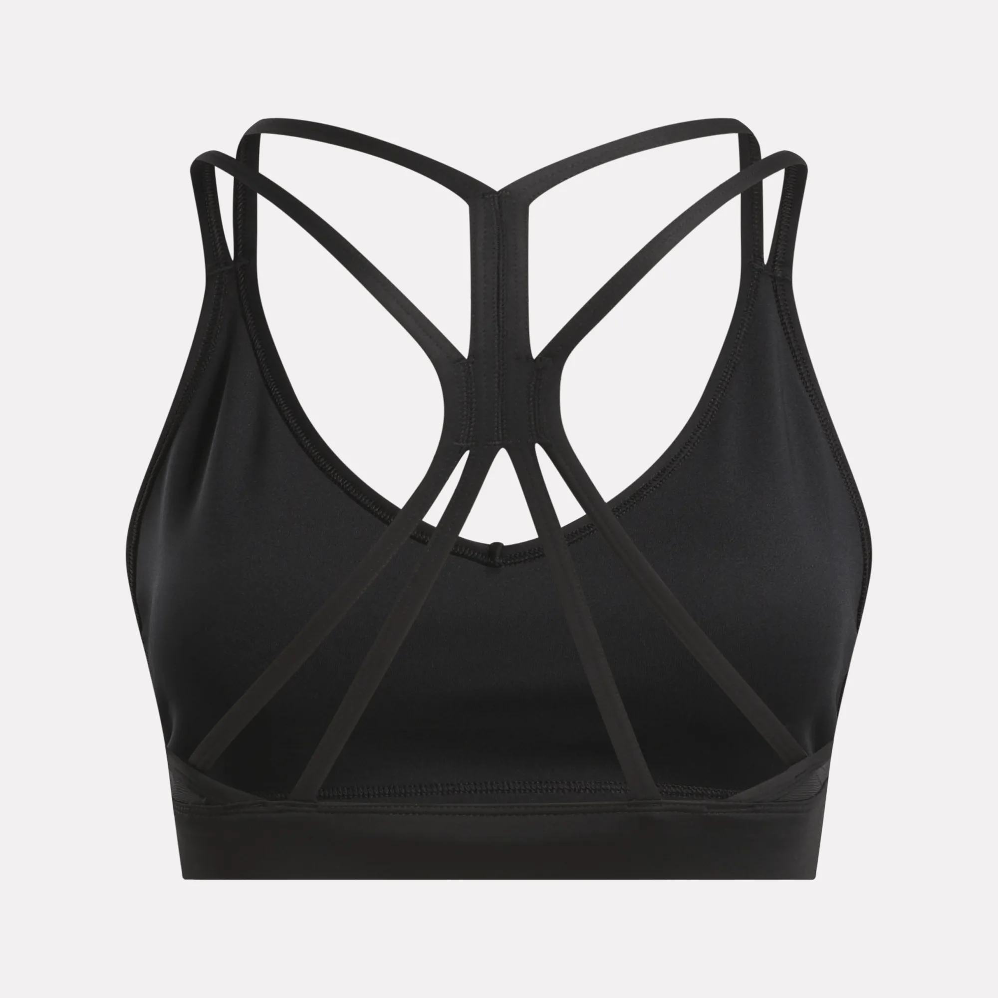 From barre class to core work. this Reebok sports bra offers support for low-impact training. Knit fabric hugs the body for a comfortable fit. and mesh inserts offer ventilation where you need it most. It’s designed without padding for a clean. streamlined look.