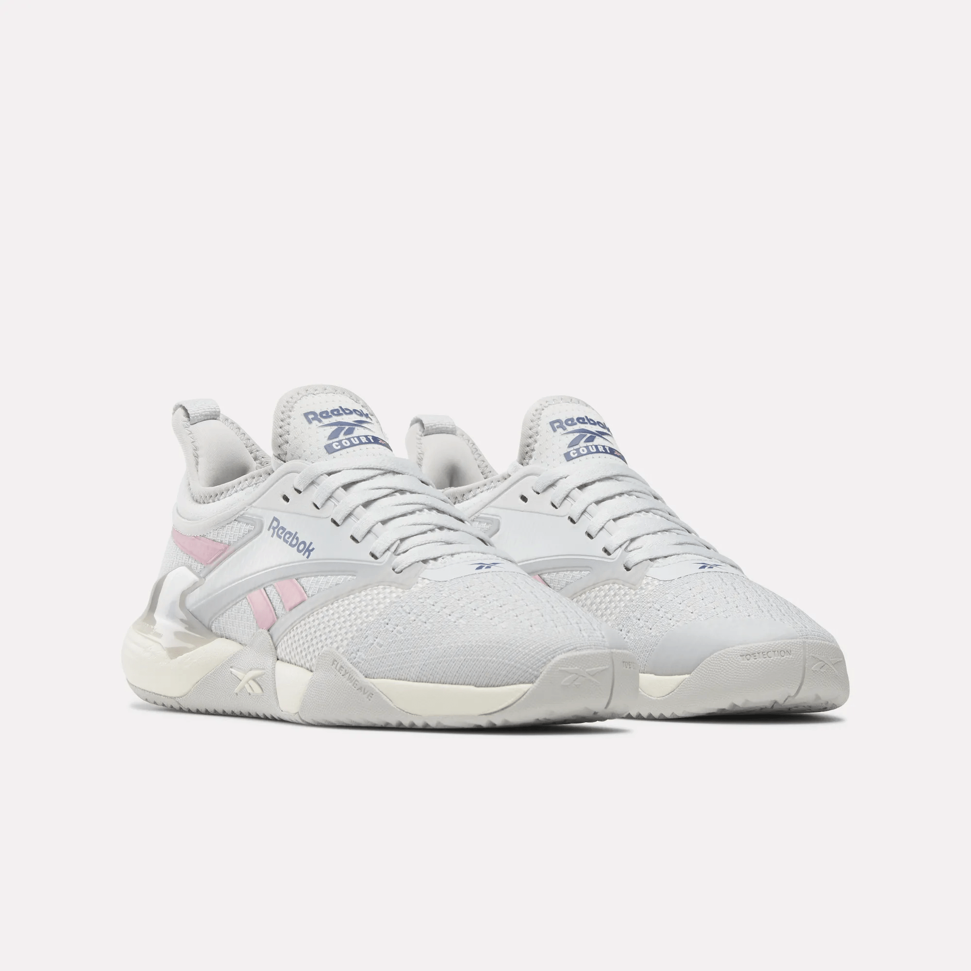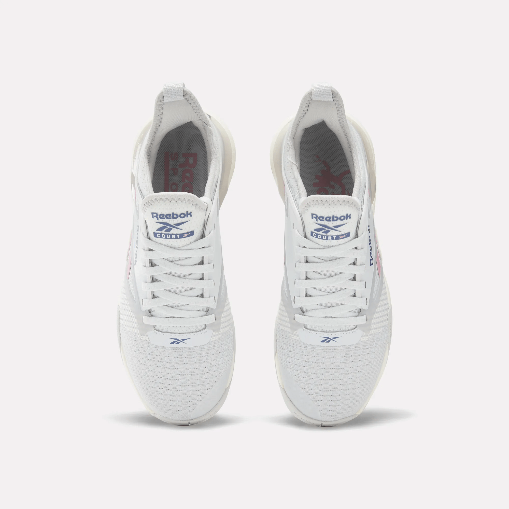 Step out of the gym and onto the court in these women’s Reebok training shoes. Created for any game you play on the court. whether that’s tennis. pickleball. padel. racquetball or badminton. They have a Flexweave® upper with extra support where you need it most. A herringbone Griptonite rubber outsole provides multidirectional traction to keep you firmly planted on the court.
