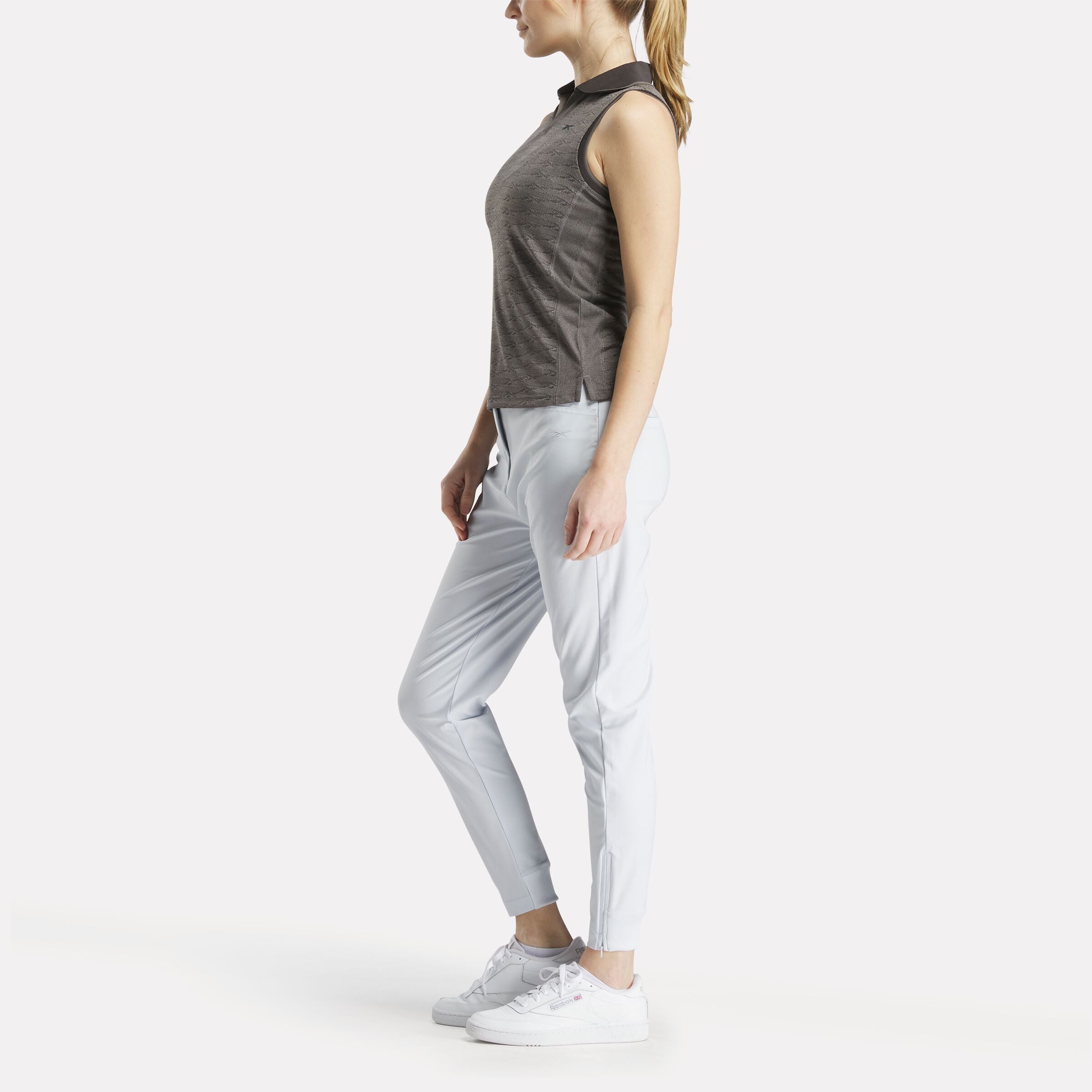 Stay cool on the course in this women’s Reebok polo shirt. The sleeveless design and RBK-DRY tech help you stay cool. dry and comfortable and keep your mind on your golf game. A collared V-neck and Vector jacquard design elevate your style for the clubhouse.