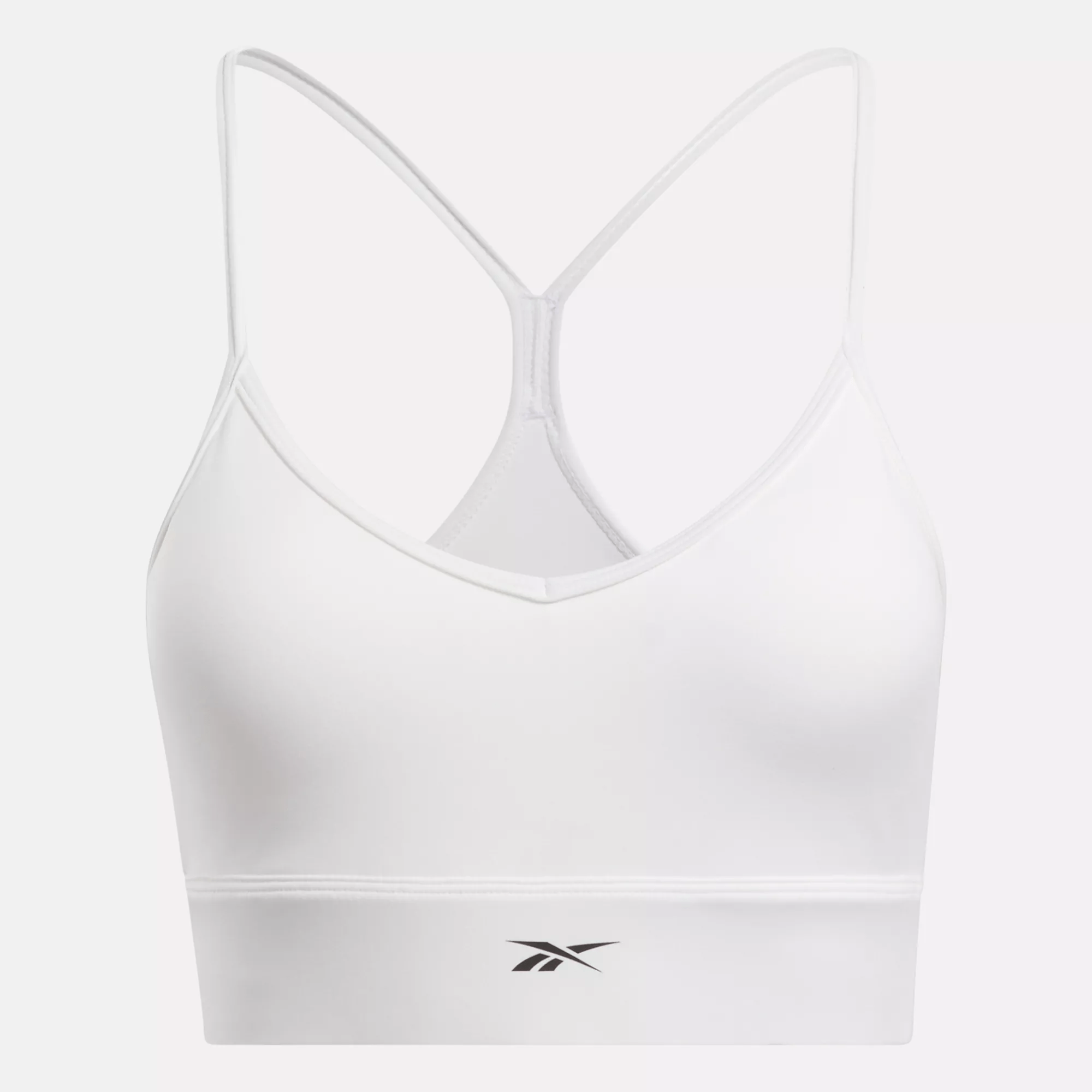 Wear this Reebok tri-back sports bra and put a little style in your training session. The soft. V-neckline creates a flattering look. The straps form a triangle pattern out back and a keyhole cutout below add breathability. Speedwick tech keeps you comfortable and dry as you lift.